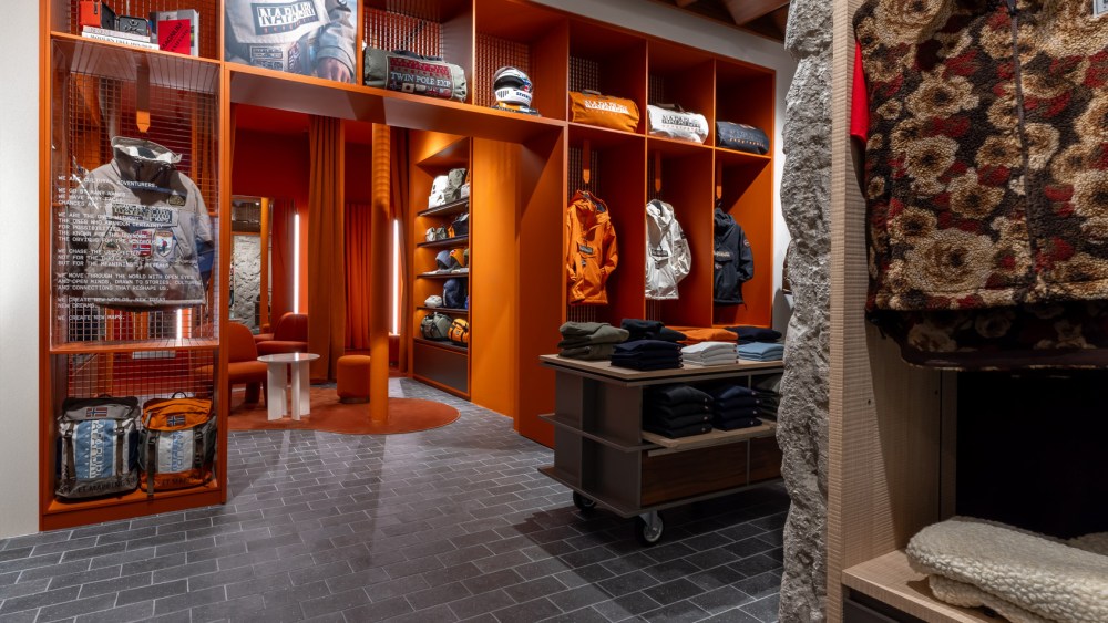 Outdoor-inspired lifestyle brand Napapijri’s Paris debut store delivers an immersive retail experience shaped by Milan-based studio Vudafieri-Saverino Partners. The space unfolds across three layers: an industrial “Urban Shell,” an “Open Archive” spotlighting the brand’s heritage and a “Shelter Room” for immersive installations and exclusives. Concrete, timber and galvanized metal are softened by warm tones and the brand’s signature orange, creating a tactile environment that balances urban energy with a spirit of adventure.