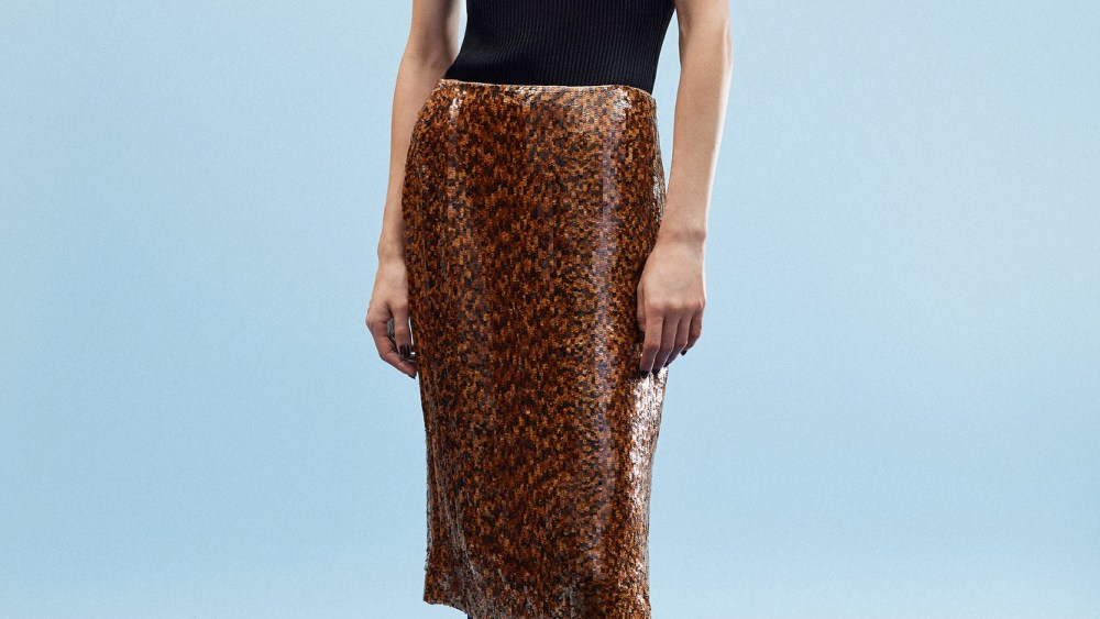 Even on the more technical side, outerwear rendered in a water-resistant silk faille gave the more practical pieces a luxe touch. In that vein, Lippes played with python, like a white top and skirt that mimicked a snakeskin pattern, which took over a year to perfect the weave on. Among the more special pieces, a top and a look that gave a peppered, snake-like effect with hand-painted sequins. “No two sequins are the same color,” he said. “At least in the U.S., our more elevated and less safe pieces sell better for us.”