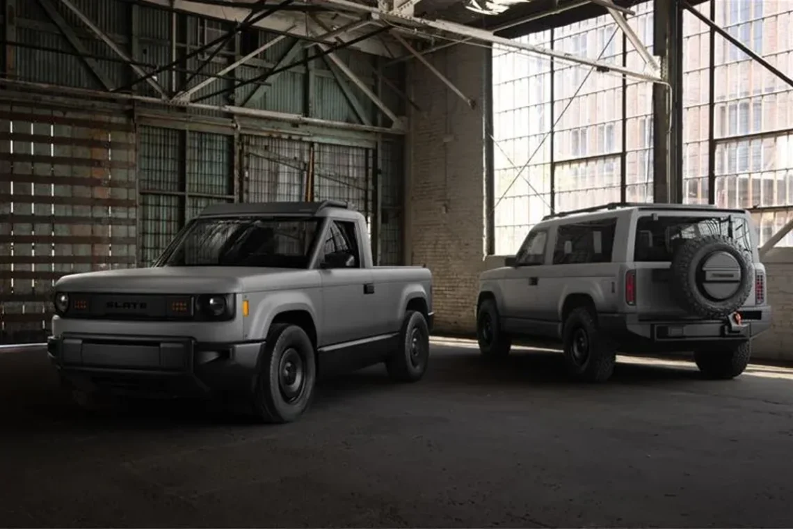 Slate is a brand-new American automaker, and its first vehicle is unlike any other EV currently on sale. It starts out as a no-frills two-passenger electric pickup truck that’s shorter than even a Ford Maverick compact pickup. There’s no standard audio system, no center touchscreen screen, or even power windows to start. Every Slate Truck comes off the assembly line exactly the same.