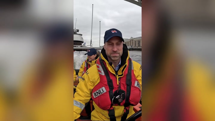 The Prince and Princess of Wales can be seen taking turns behind the wheel of the vessel, donned in RNLI life jackets, before enjoying pastries and a warm cup of tea with the organisation back on land.