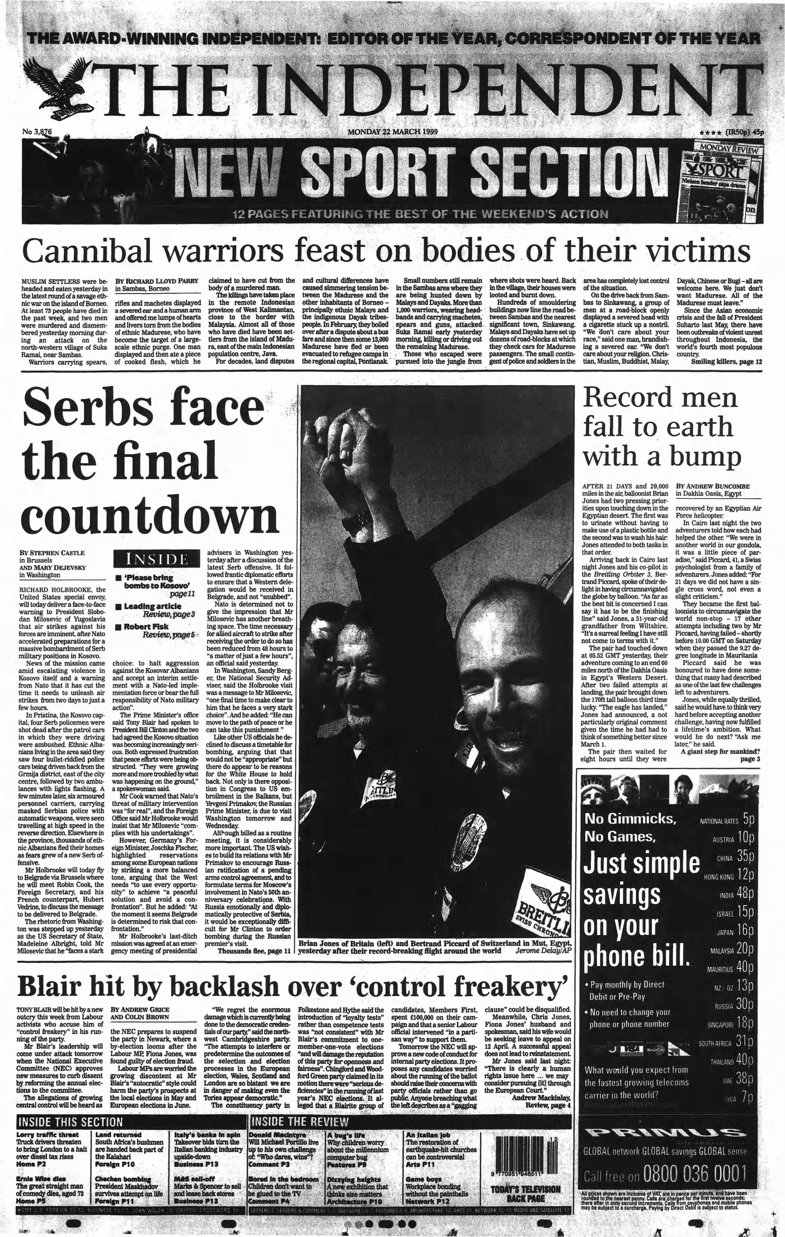 The Iraq war drives front-page retrospectives this week, as The Independent stands firm in its opposition and brands the conflict a “march of folly”. War also looms in the Balkans, as the US warns Slobodan Milosevic to prepare for airstrikes amid escalating violence in Kosovo. A crisis of a different kind unfolds in a truly bizarre story involving the Italian mafia, where a tale of pollution and corruption threatens Europe’s mozzarella supply. Yet, moments of hope also define the week. Germany stands on the cusp of reunification as East Germans vote decisively for Helmut Kohl, and decades later, Nazanin Zaghari-Ratcliffe finally walks free after the UK strikes a landmark deal with Iran. Explore a world in tumult across these front pages of The Independent.