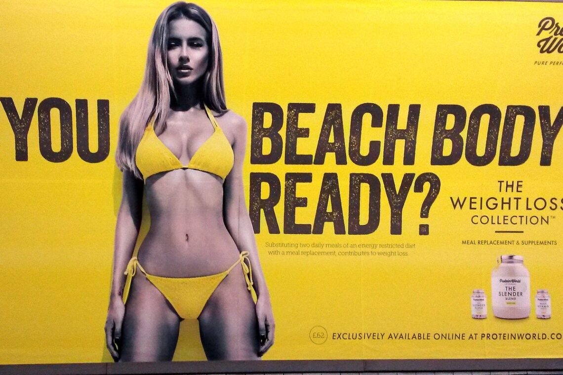 With the aforementioned question in bold lettering positioned behind her, it was an advert released in 2015 by Protein World, a meal replacement brand peddling its weight loss supplement. And it caused a major stir, sparking viral outrage and a spate of copycat campaigns turning the messaging on its head (“every body is beach body ready”) as well as getting banned in the UK due to concerns over the implication that taking Protein World’s supplement would boost weight loss.