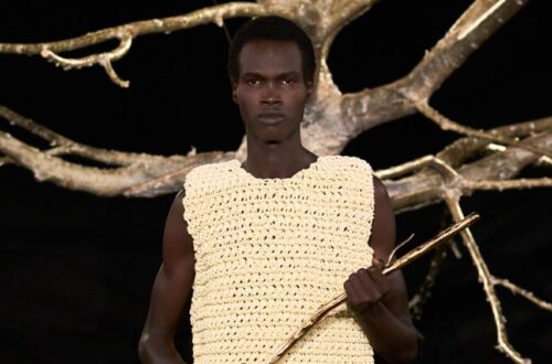 Party dressing is a sweet spot, right in line with the holiday bent seen in resort collections. A white tulle frock with a cropped jacket, fur stole and riding boots set the line up as his first look. A gold foil mimicked snakeskin on dresses, while a mix of greenish sequins in different sizes — some shiny, others matte — spoke to his craft, creating a trompe-l’oeil effect that gave movement and depth to a long skirt. He paired it with a sheer knit or a short-sleeve blouse in the style of a sport jacket with toggles, but made luxe by his fabric choice of silk.