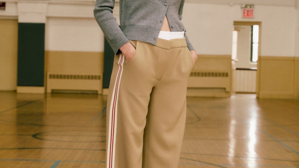 “It’s where high sport meets high shine,” Swanson Beard said. Case in point: a head-to-toe denim look emblazoned with presumably thousands of rhinestones, or the double-waisted track pant paired with a gray cardigan that boasted a bejeweled collar. “It’s like you have your own necklace on it already,” Swanson Beard said.