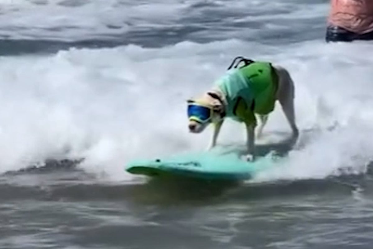More than 50 dogs participated in the event, which reportedly featured 10-minute contests between different breed sizes. In video posted to Instagram Monday, dogs can be seen expertly riding small waves to shore. One daredevil even surfed in backwards.