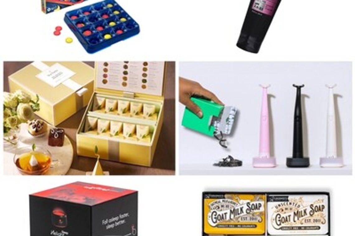Some specific items include a $139 Helight Red Light Sleep Aid, a Tea Tasting Assortment Tea Chest worth $69, and a PETA x Miomojo Angelica Bag, made with faux leather, worth $140.