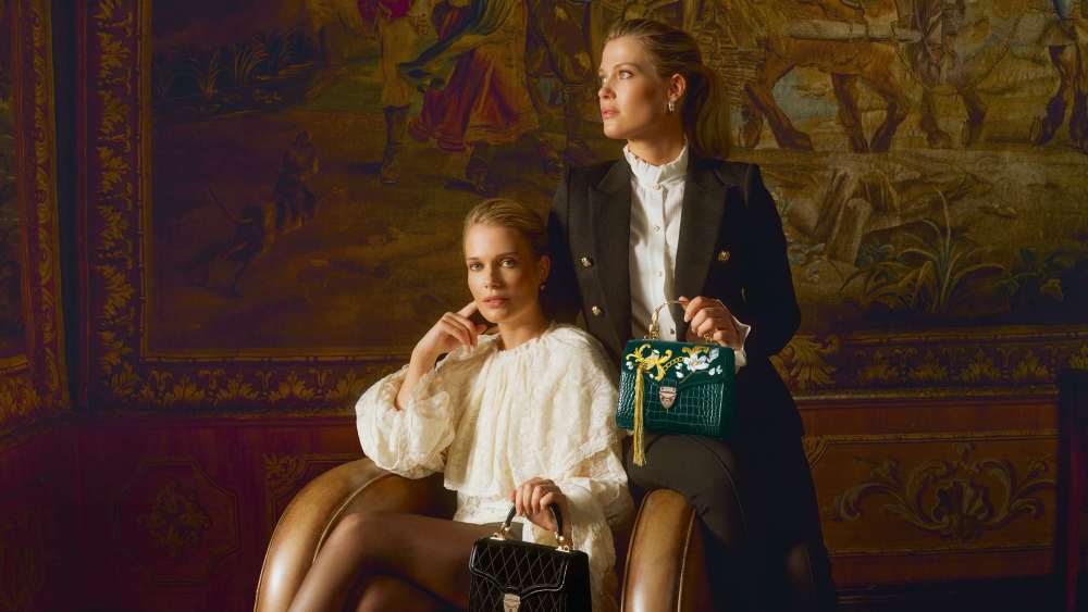 The sisters – and their bags – also star in the brand’s holiday campaign, A Very Aspinal Christmas, which was shot at West Wycombe Park, a stately home in Buckinghamshire, England that’s been used for film sets including “Downton Abbey,” and “The Importance of Being Earnest.”